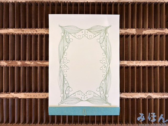 YS-002 用紙箋 ゲンコウヨウシ箋 内容:A5・200字詰 30枚 サイズ:148×210mm 原稿用紙のような どこか懐かしく素朴な雰囲気の 用紙箋は如何でしょう 物語や散文を書いたり お気に入りの 詩やコトバを綴ったり 便箋としてなど 様々な使い方をお愉しみください アイボリーの紙に 手書きの飾り枠とマス目を アメジスト色のインクで 印刷しました マス目は用紙箋を 縦にすると横長 横にすると縦長になり どちらも縦書き横書きが出来ます 二〇〇字詰め